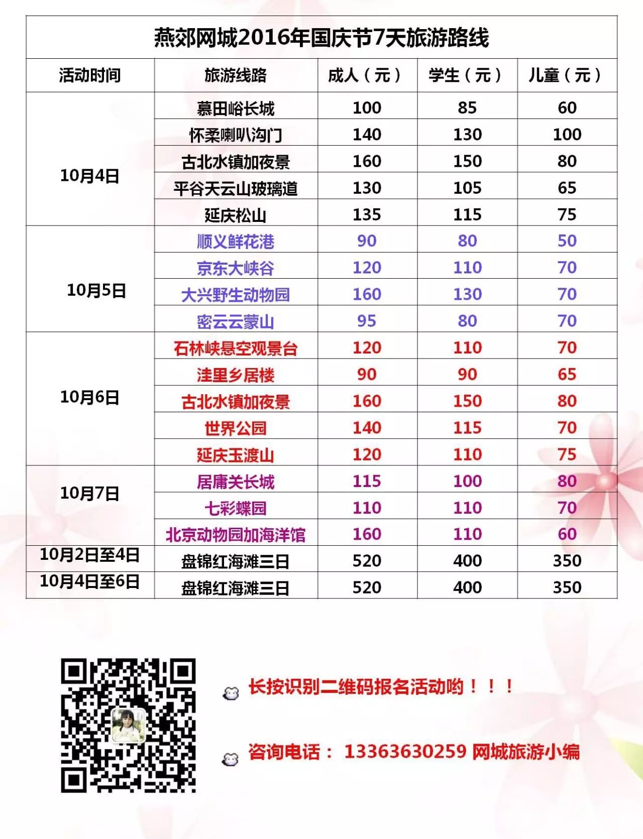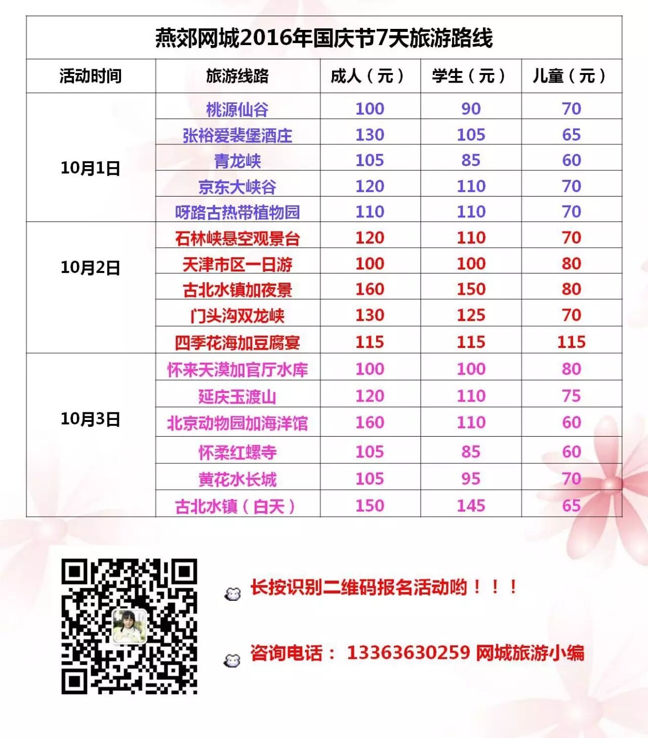 微信报名:添加13363630259网城旅游小编个人微信号,输入每个人的姓名+电话+身份证号+天津即可报名活动;