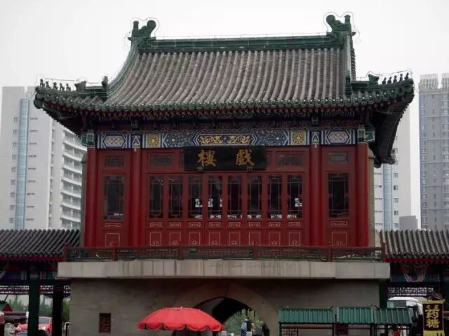 位于天后宫对面的戏楼,是天津最早的露天舞台,是为了答谢妈祖的护佑而给妈祖演戏用的。